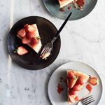 Preheat the oven to 180°C and place a baking tray in the middle shelf of the oven. Line the base of a 23cm springform cake tin with parchment paper, but don’t grease the sides.