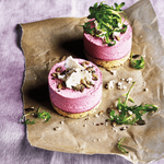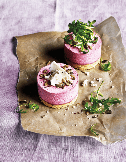 Beat the cream cheese and feta cheese together. Whizz the beetroot into a fine paste in a food processor. l Add the beetroot to the cheese mixture along with a healthy pinch of salt and pepper, and mix together thoroughly. Spoon into the moulds and level off with a palette knife. Whack ’em in the fridge for at least 2 hours to set.